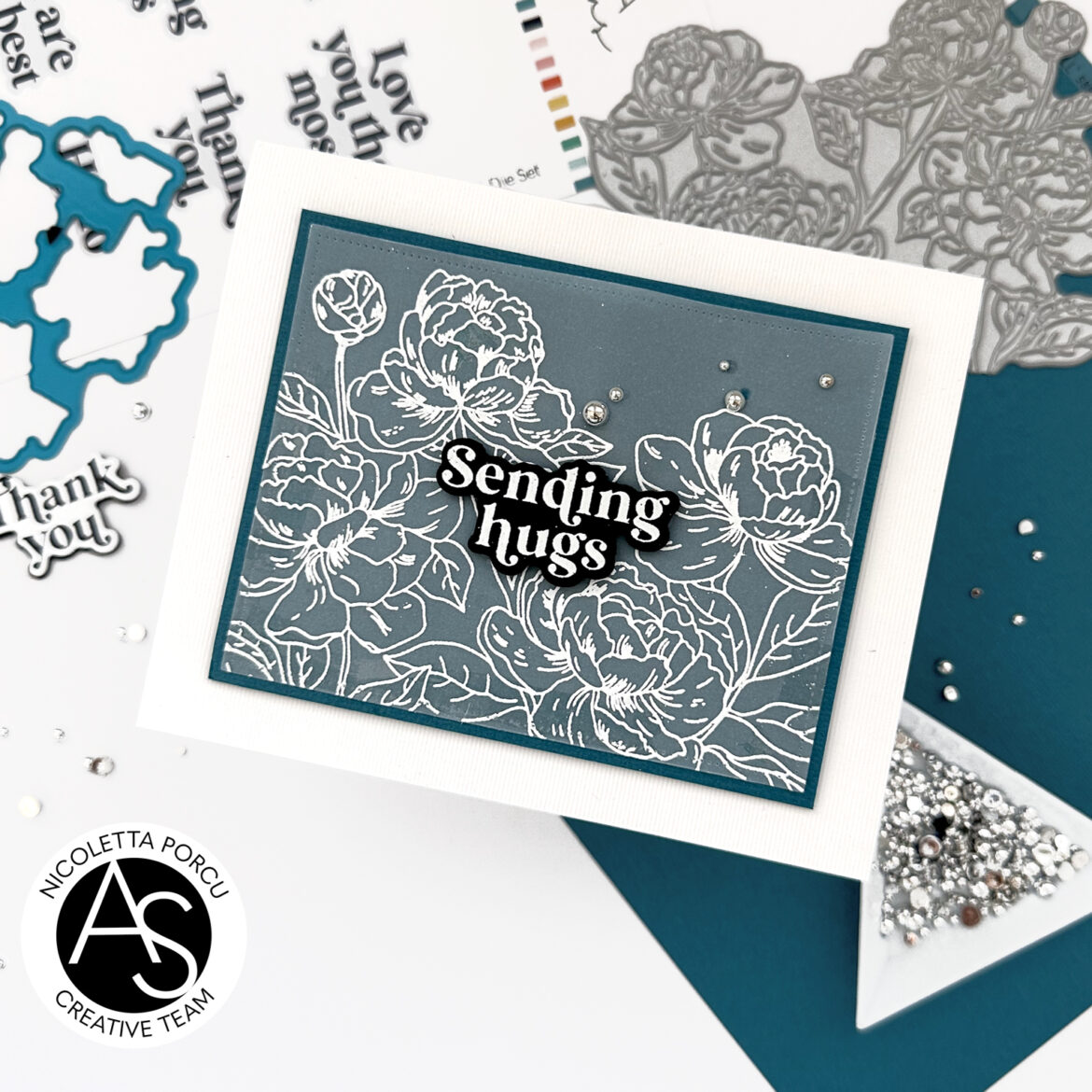 As you know we had a new release at Alex Syberia Designs and I hadn’t used the Peony Blossoms Press Plate yet, so it’s the focus of my card.