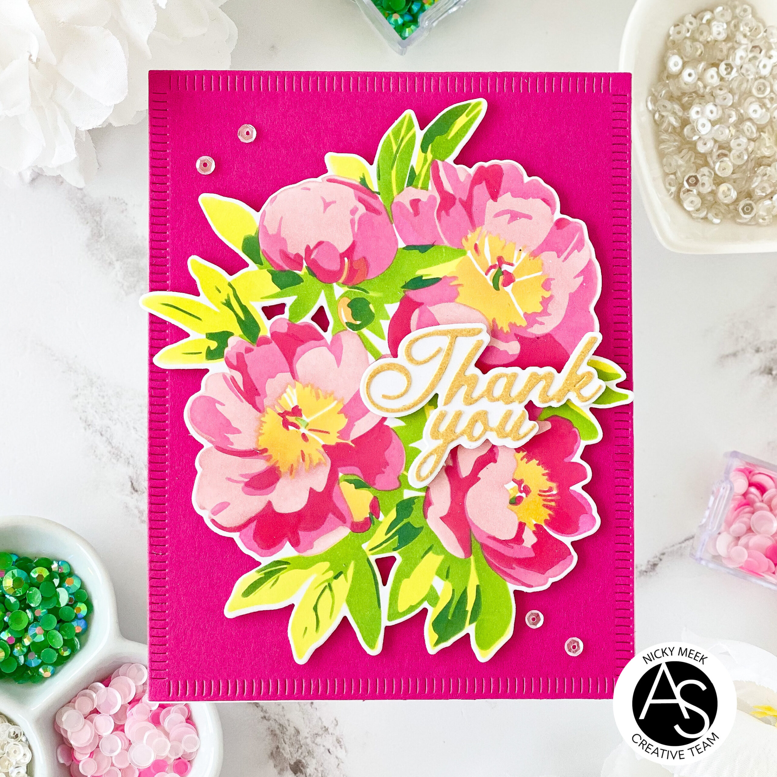 Hello everyone, this is Nicky with you today on the Alex Syberia Designs blog. I have a vividly coloured thank you card to share with you today using all Alex Syberia products. I always like to keep some thank you cards on hand to send out at short notice as life dictates.
