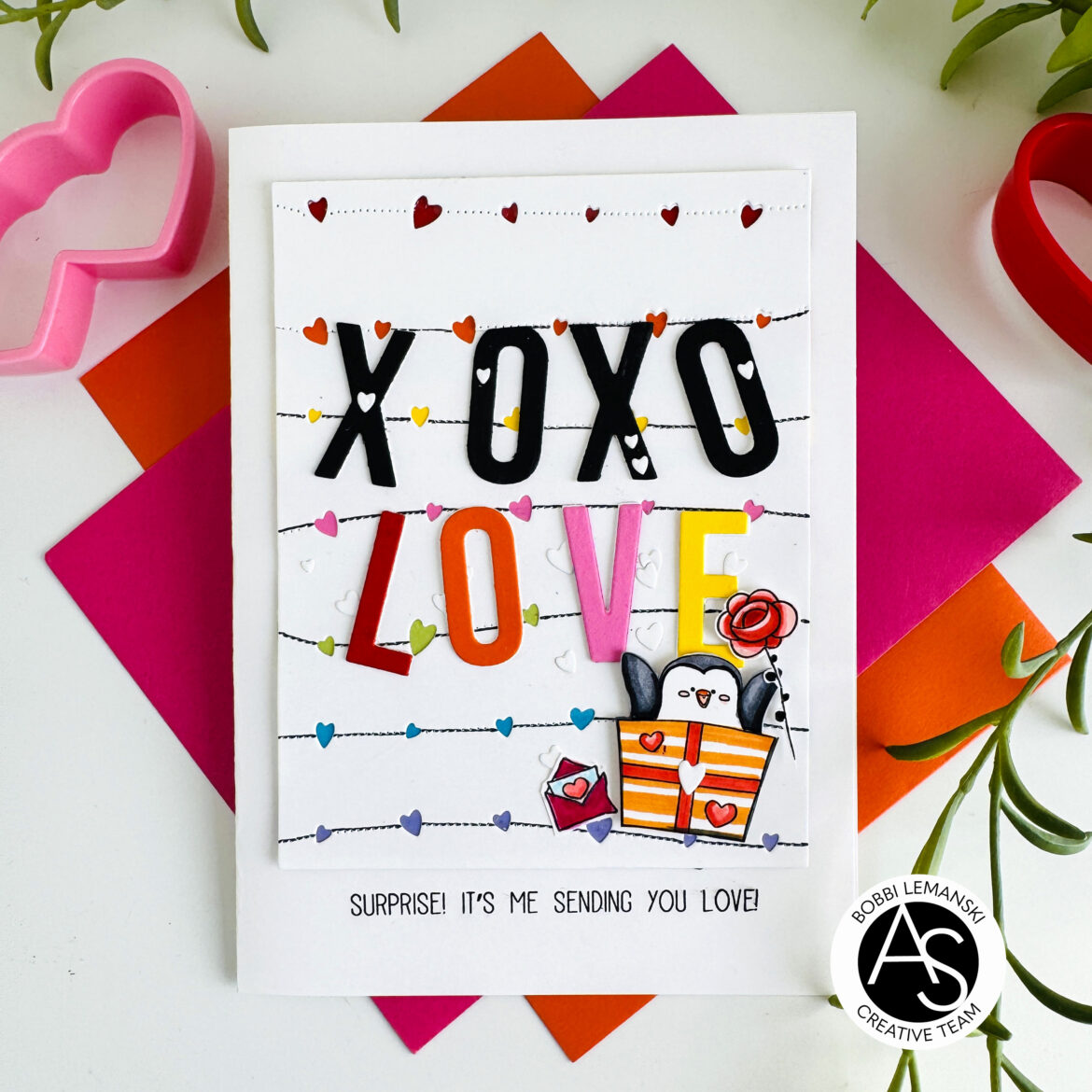 Ready for a sweet surprise, some love, and a cute penguin?! Well this card has it all! I’m using the following Alex Syberia Designs products: