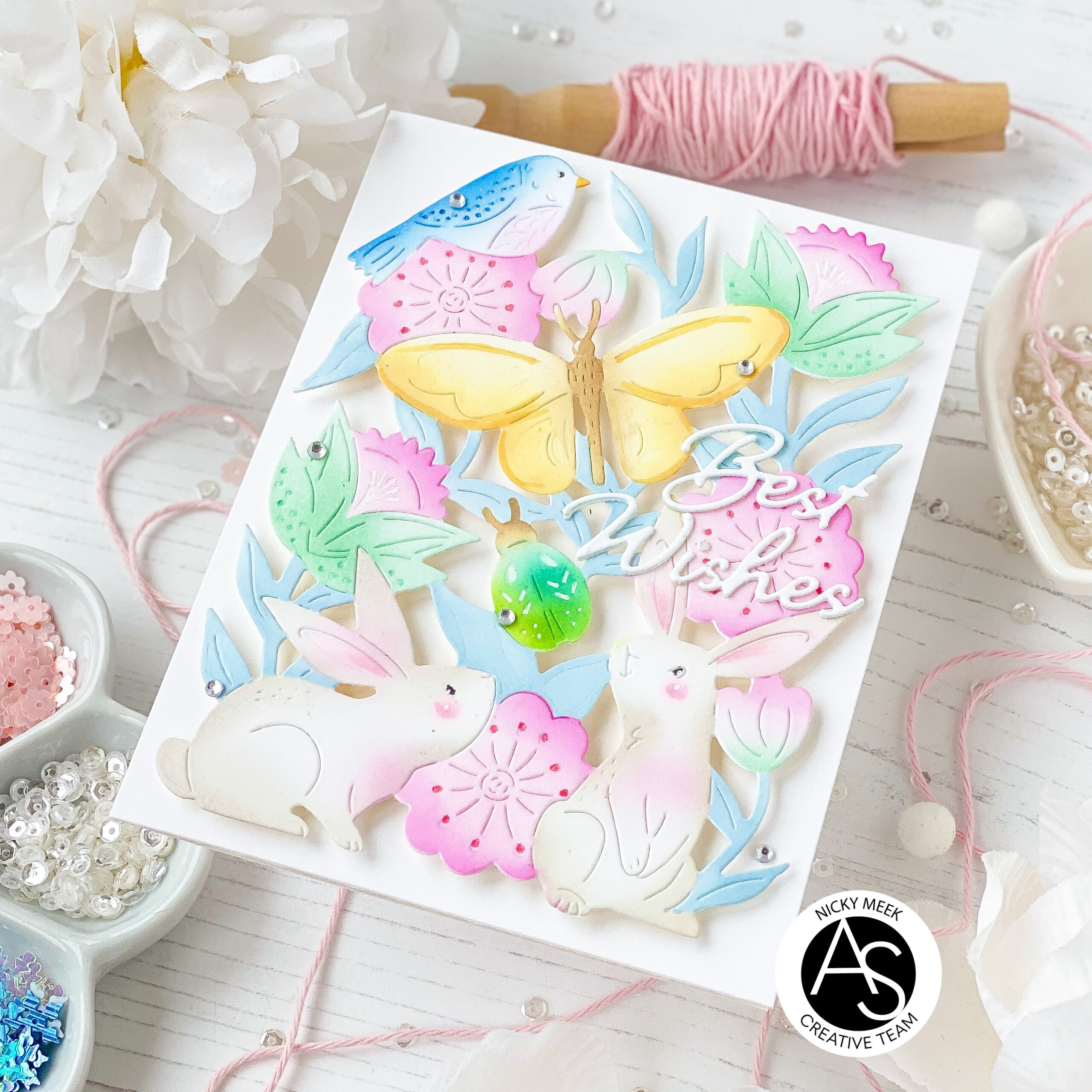 Hey everybody this is Nicky with you today on the Alex Syberia Designs blog and I have a sweet pastel card to share with you that features exciting products from the brand new Spring Meadow Collection release which went live yesterday!