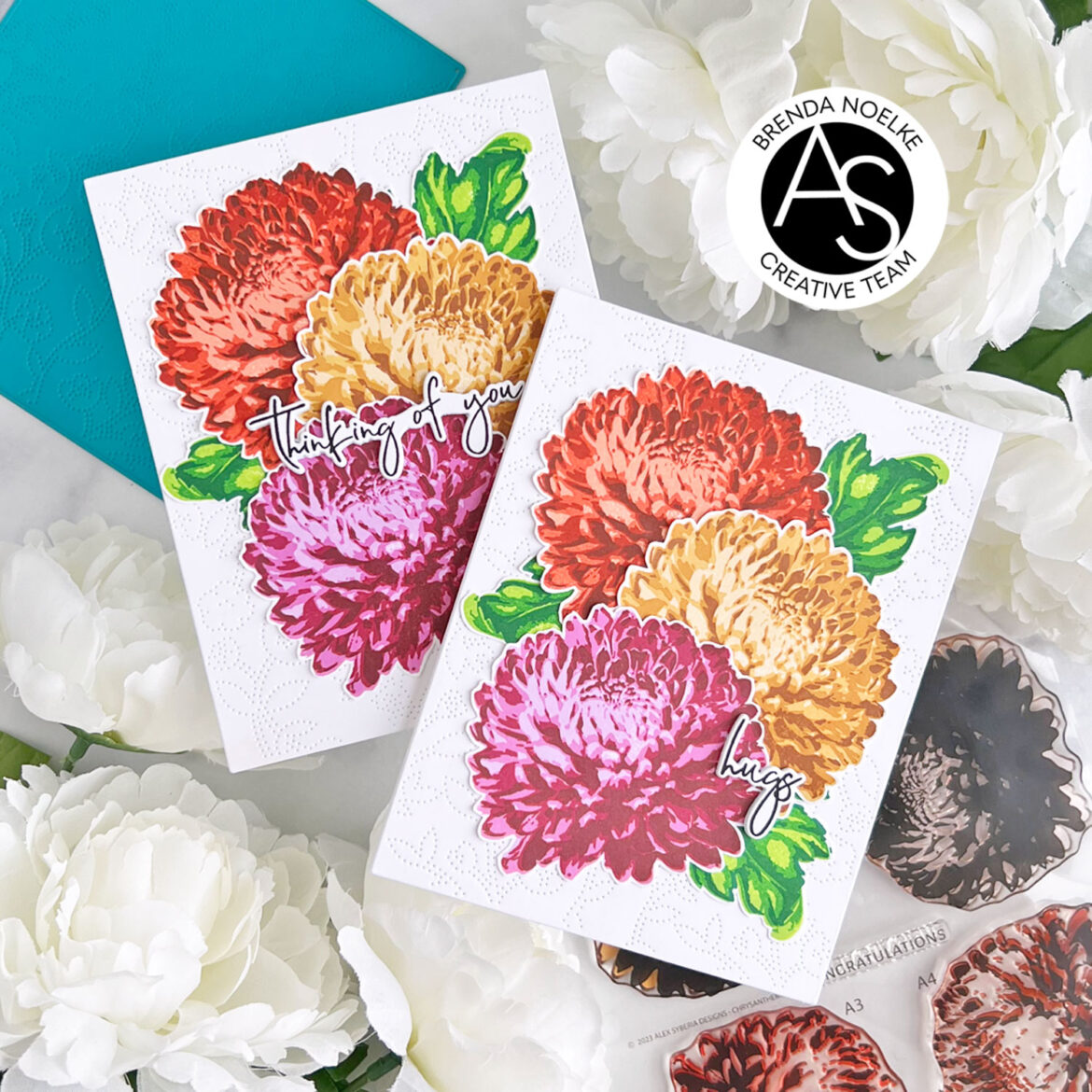 Hello, my crafty friends!! Brenda here with a pair of colorful chrysanthemum cards featuring some of the goodies from the newest Sunkissed Memories Release!! I LOVE how dimensional these blooms are!!