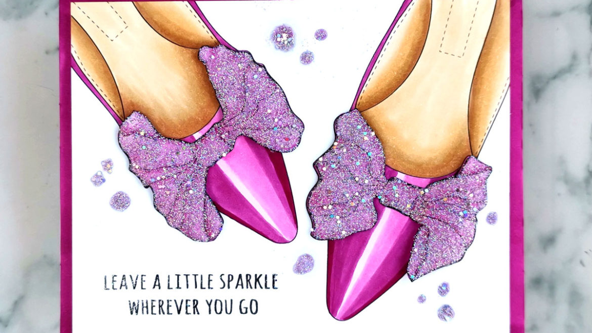 I printed the image twice and cut the 2 bows out of one of them. I colored them with the lightest pink marker and then added a mix of a pink translucent embossing powder and glitter. I only glued them on in the middle for a little fun dimension.