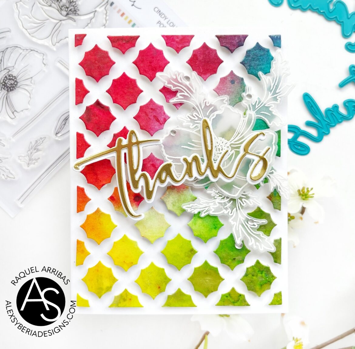 I also used the Large Thanks Die for my sentiment and white heat embossed on vellum the Cindy Lou’s Poppies to give some extra dimension.
