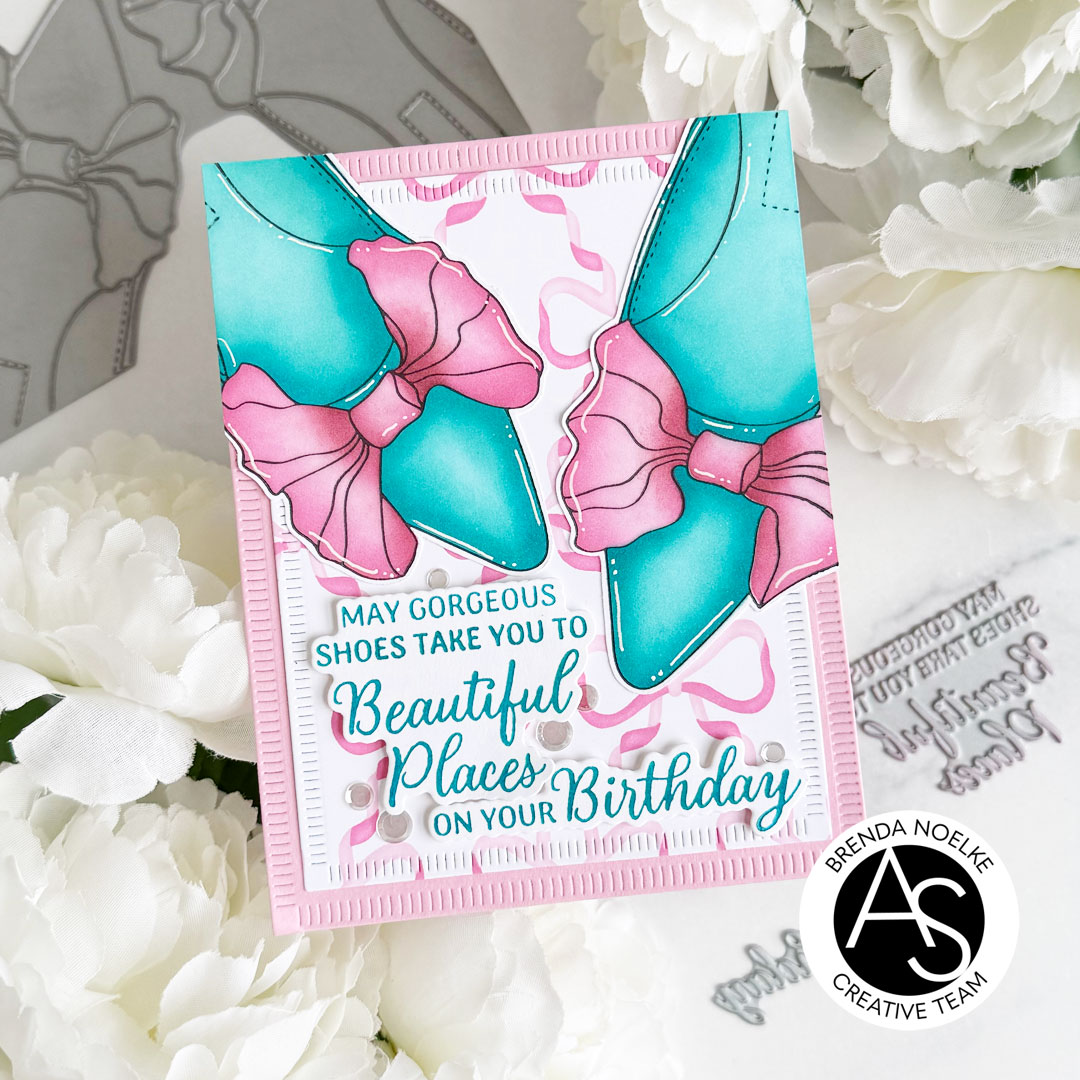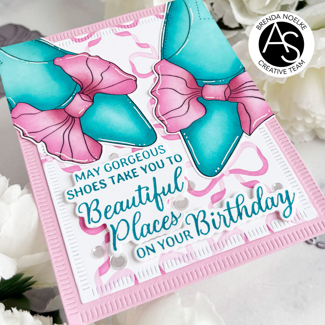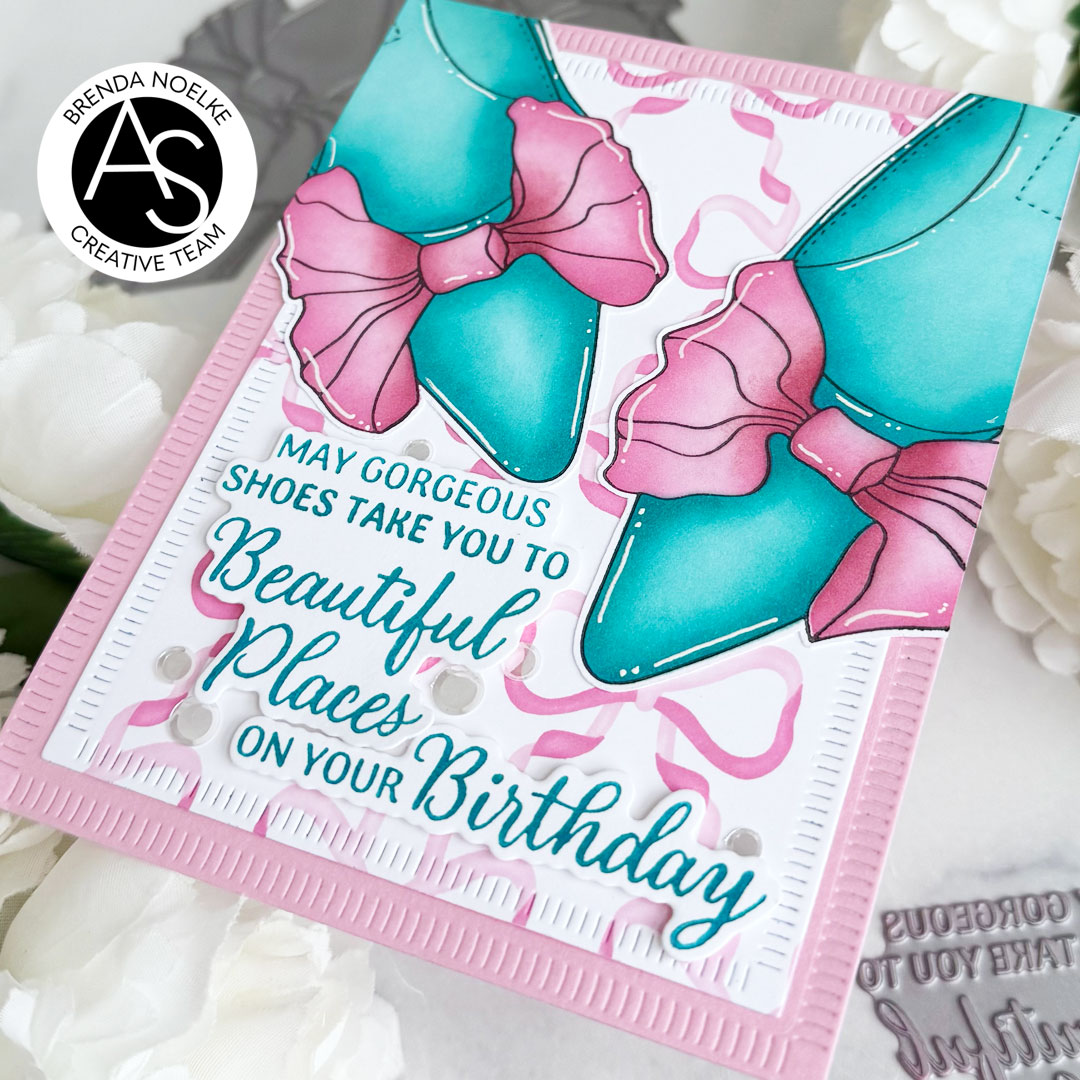 Hello, fellow crafters!! Brenda here with a card featuring the Bow Shoes Press Plate and Coordinating Stencils and the Shoes Sentiments Press Plate & Die Set!! There is also a Bow Shoes Press Plate and Coordinating Stencils Bundle available!!