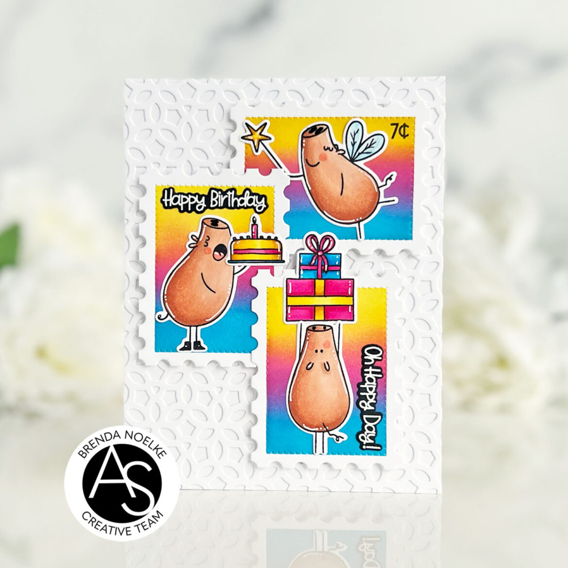Hello, crafty friends and happy Monday!! I hope you’re all doing well!! Brenda here with a fun birthday card featuring the Hog Happy Day Stamps & Coordinating Dies, Postage Stamps Cover Die & Stencil and the Alhambra Arabesque Cover Die!!