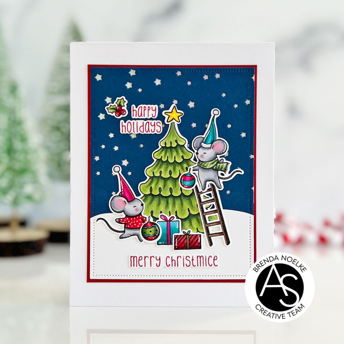 Happy Monday, crafty friends!! I hope you had a fantastic weekend!! Brenda here today with a holiday card featuring the darling Merry Christmice Stamp Set, along with the Magic Stars Die, from the newest holiday release!!