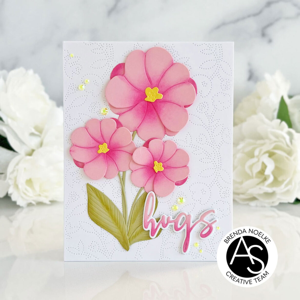 Happy Monday, crafty friends!! Brenda here today with a simple card that can be used for just about any occasion!! The delicate white background really lets the flowers take center stage!!