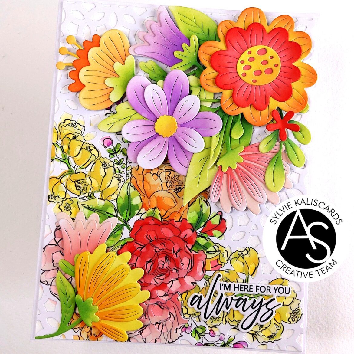 Today I’m sharing a floral card featuring the Andalusia wildflowers and the Alhambra arabesque cover die.