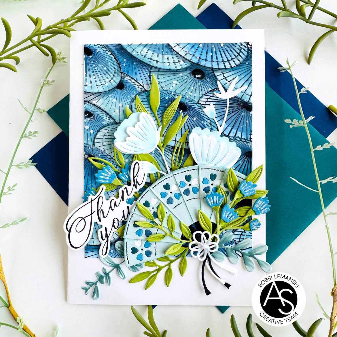 Hi crafty friends. It’s Bobbi Lemanski here with a vibrant card featuring some new items by Alex Syberia Designs. This 5″ X 7″ card features the following new items from the Spring in Kyota collection:
