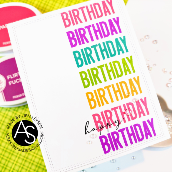 For this card I’m using the Birthday Wishes stamp set, my Misti and some beautiful Catherine Pooler inks. Alex Syberia Designs and Catherine Pooler are actually teaming up for a few hops to show you how well our products work together and to give away a couple of giftcards! Don’t forget to head on over to Instagram to play along there!