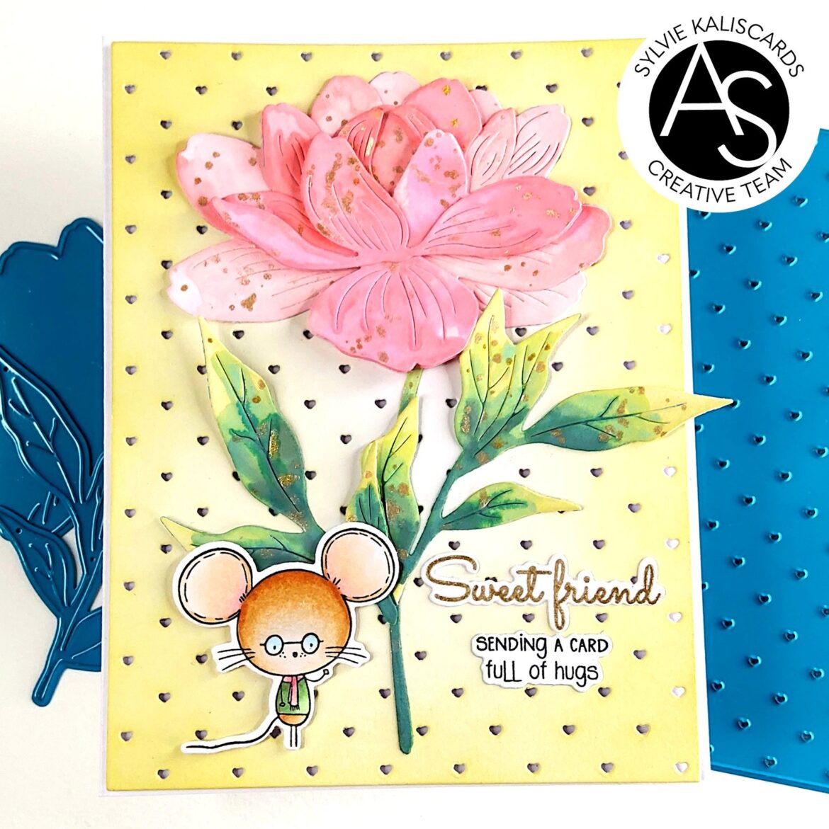 For today’s project, I finally got some time to try the gorgeous Elegant peony die set which I paired with a cute mouse from the Sweet friend set. For the background, I used the Tiny hearts cover die