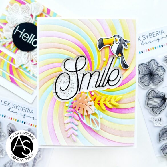 Raquel here today sharing some more inspiration. Today I’m showcasing the Sunrays Radiating Stencil from the latest release in two very similar versions: