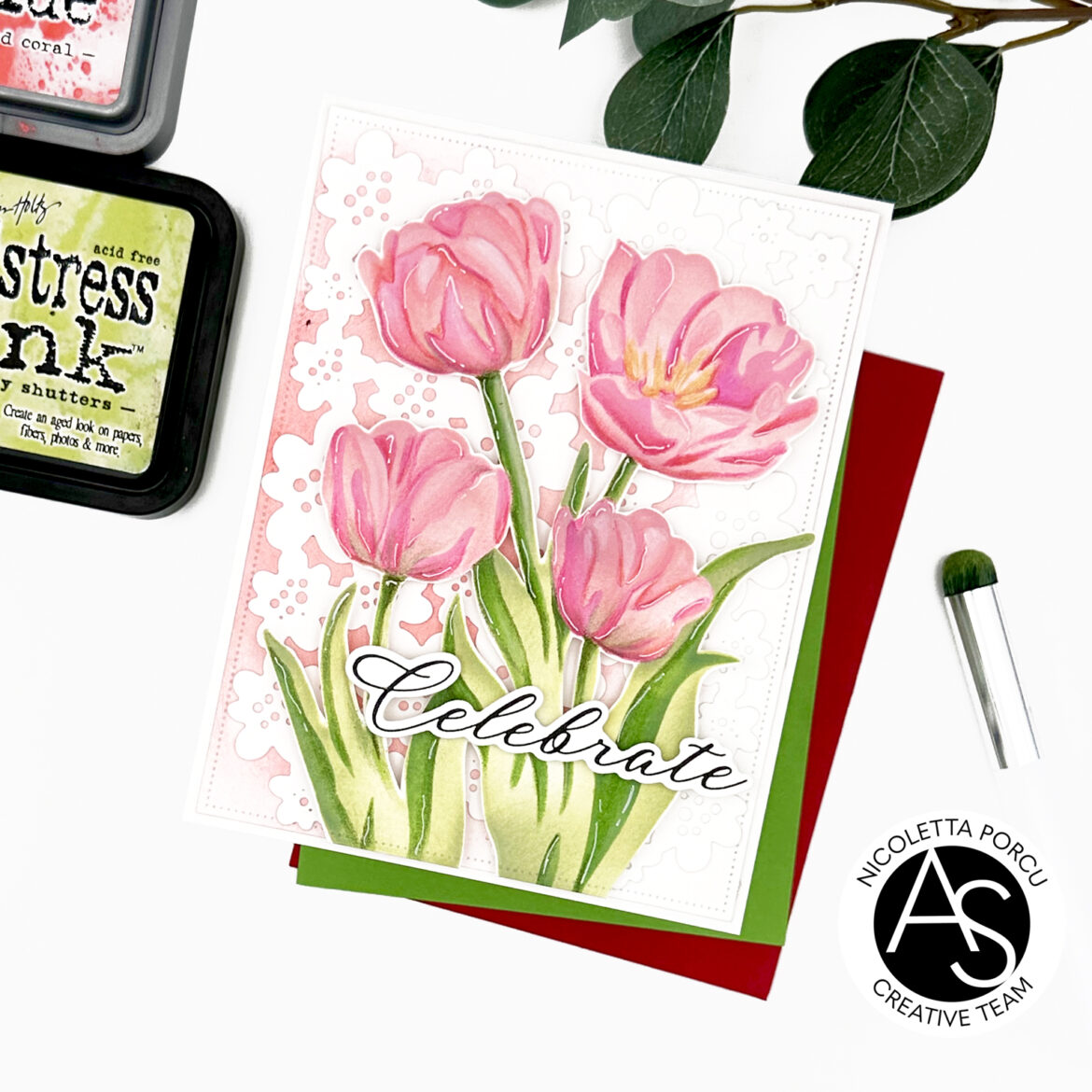 For this card I chose to featuring the Spring Tulips Layering Stencil set from the Spring release mixing them with some products from the previous releases, Hope you like it!