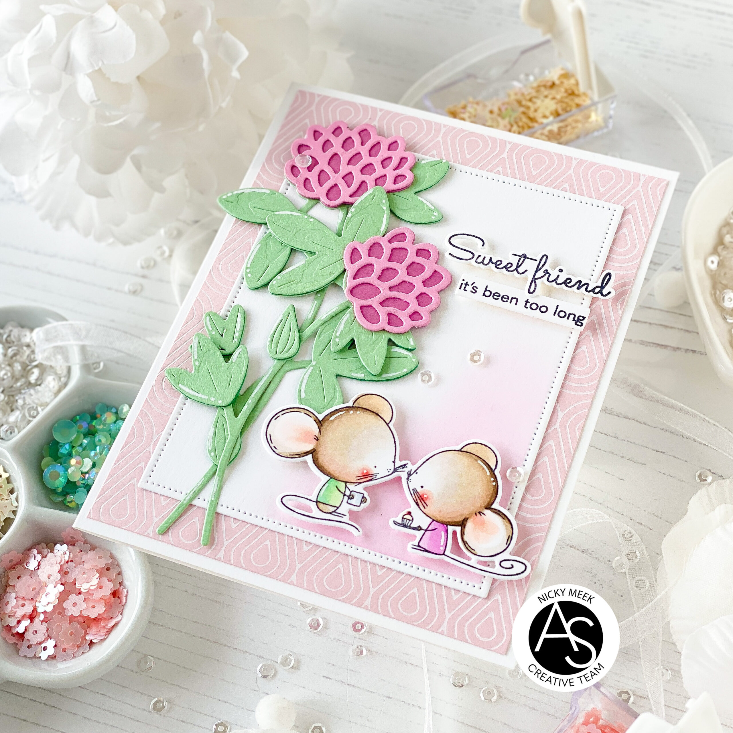 Well hello everyone, this is Nicky back with you today on the Alex Syberia Designs blog and I’m sharing a card for a friend that you miss.