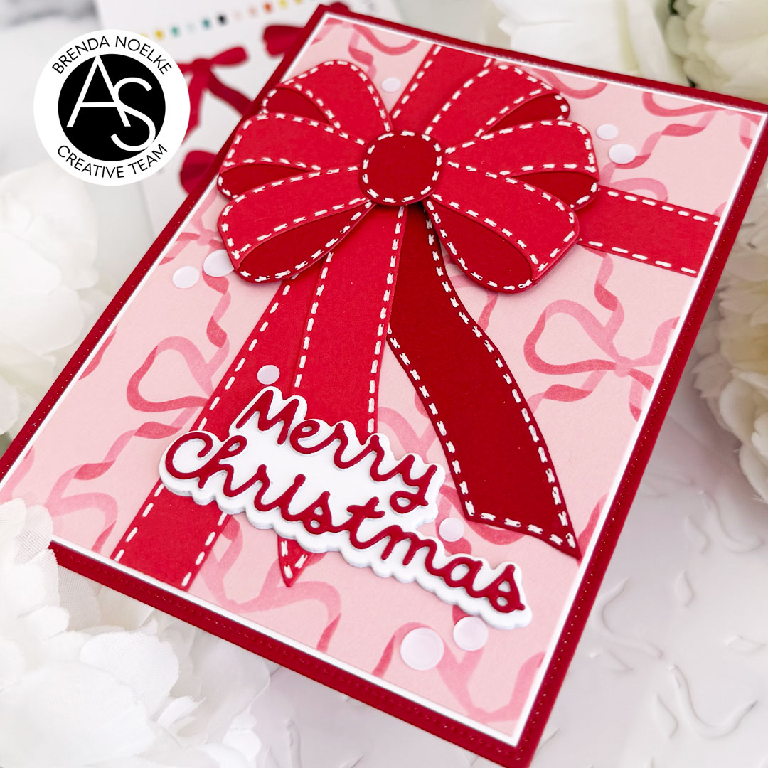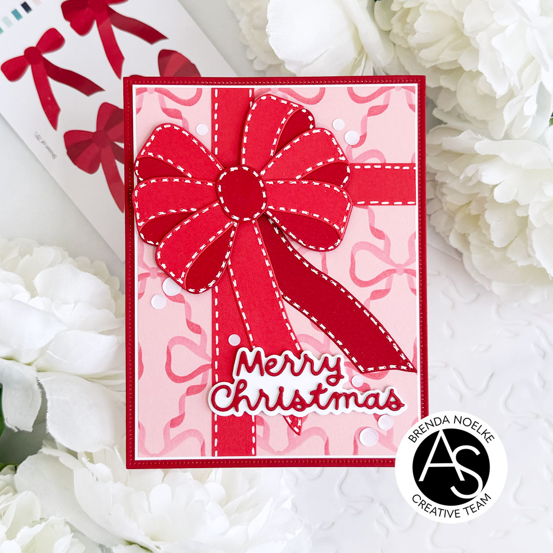 Hello, crafty friends!! I hope you had a wonderful weekend!! Brenda back with a stenciled and die-cut Christmas card featuring goodies from the latest Bow-Ho-Ho Release!! I am loving the bow trend right now…how about you? Let’s get to my card, shall we?!?
