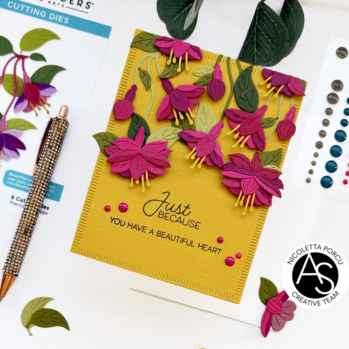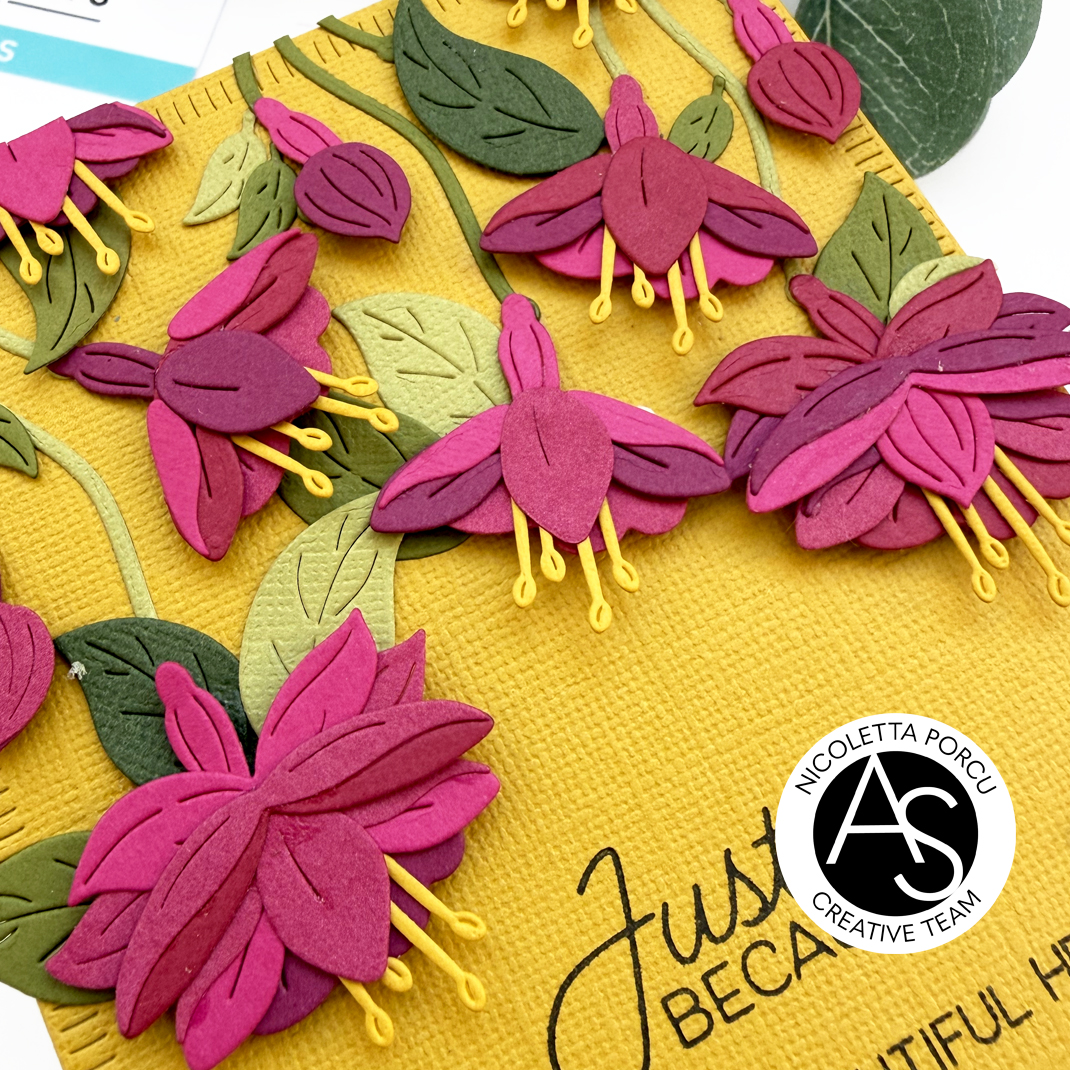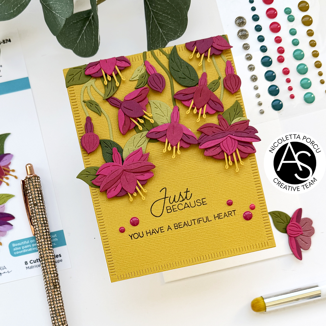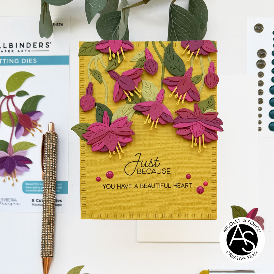 Is Nicoletta, here today sharing a new card with you. Another one using the products from the amazing new Magical Fuchsia release by Alex Syberia Designs for Spellbinders.